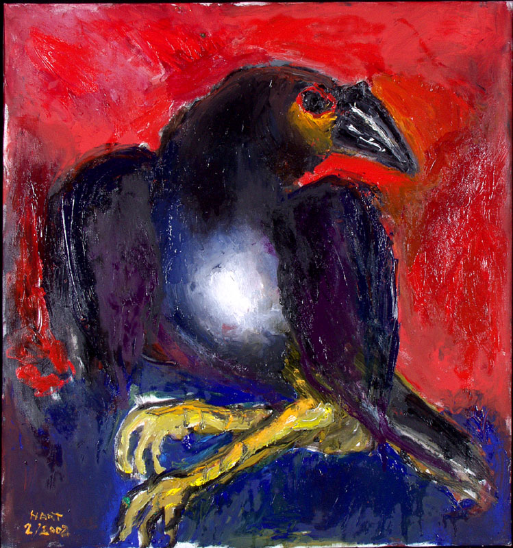 crow with crimson red, oil on canvas, 2001, 30" x 36"