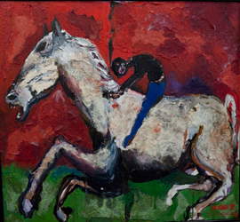 The variety of the exhibited works reflects the 60-year period spanning the artist's early paintings (dated 1951) to a recently created series of collages and mixed media on wood and paper. The show featured the series "The Orchestra of the Damned" as well as many other pieces, including... |