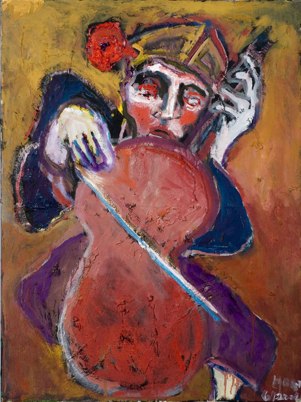 the cellist , oil on canvas, 2006, size: 30 " x 40 "