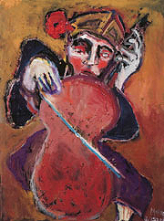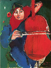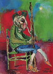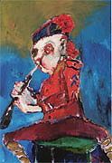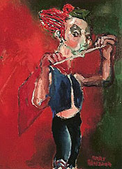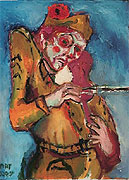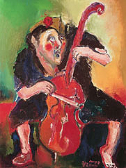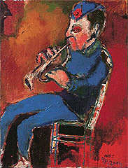 | In my most recent series of oil paintings of the "ORCHESTRA OF THE DAMNED", I created a metaphor on an anti-war theme, counter pointing the beauty of music against the brutality of war. The musicians are all veterans of foreign wars. |